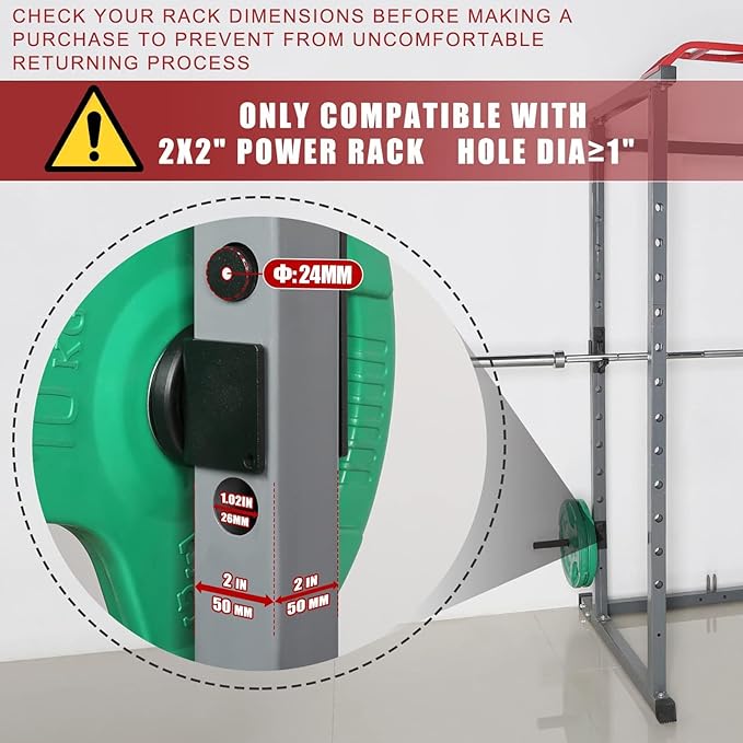 - 💪EASY TO USE - Easy to insert and lock-in design, just slide pin into power rack's hole and swing down to lock in place. This smart design makes it more convenient for loading and unloading the weight plates