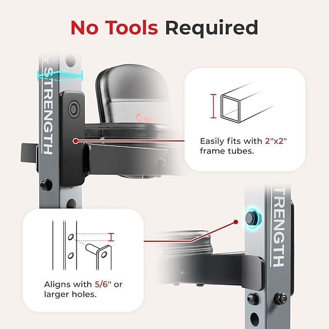 - 【FITS MOST POWER RACKS AND SMITH MACHINES】Works with most power racks or smith machine with 2" x 2" in steel tubing and 5/6" in or larger holes. We strongly recommend checking the measurements of your rack prior to purchase.