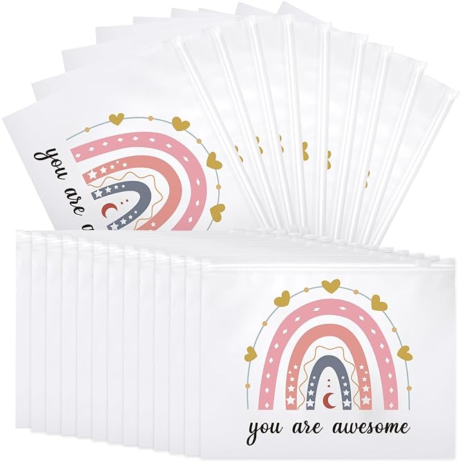 Reginary 100 Pcs Inspirational Gifts for Girls Women Travel Cheer Makeup Bag Bulk Loved Quotes Cosmetic Bags with Zipper Thank You Encouragement Birthday Gift Bag for Nurse Teacher Friend (Charming)