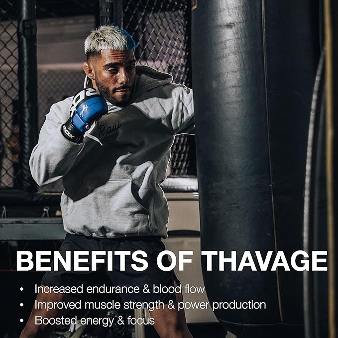 - The New Standard: Whether you’re hitting the gym, going for a run, or crushing a home workout, Thavage Pre-Workout has everything you need to take your fitness to the next level. Made in the USA. No artificial ingredients, no GMOs, no BS.