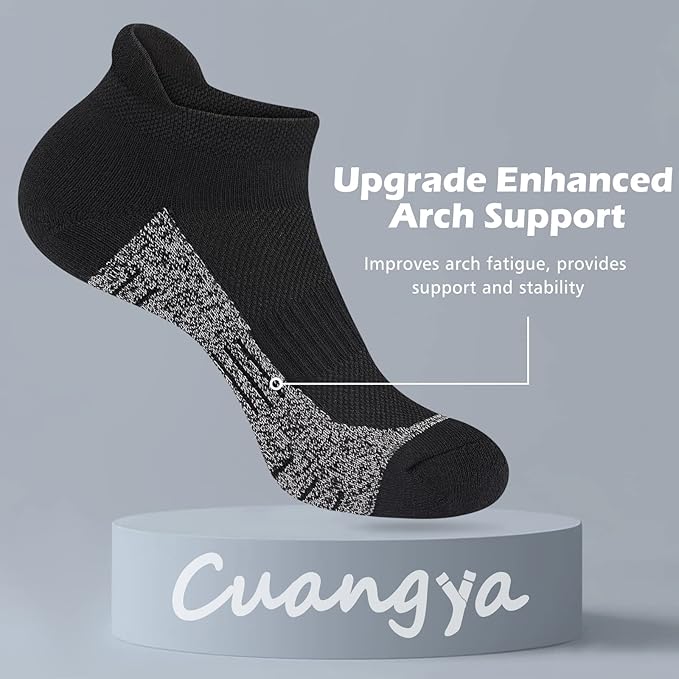- Arch Support for Running Socks - The fit ensures they stay in place all day, and our short socks have just the right amount of compression support at the arch to keep you comfortable and secure while walking, exercising, hiking, traveling, jogging, relaxing and running. Providing you with the ultimate in comfort and confidence.