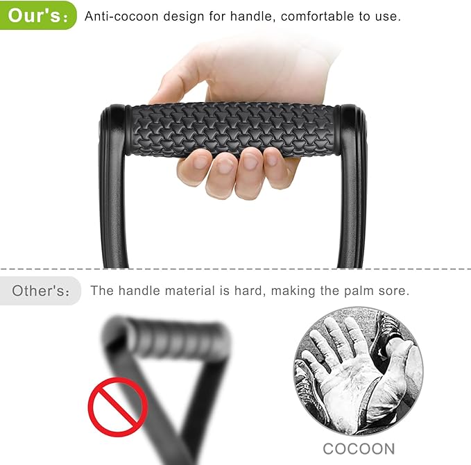 - The free rotation D handle grip covered w/ soft rubber provides a very comfortable hand feel which is much better than those knurling steel handle or hard plastic handle that may hurt your hands in a few uses.