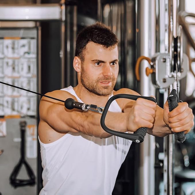 SELEWARE Triceps LAT Pulldown Attachments Home Gym Workout Accessories with Non-Slip Soft Rubber Grip Cable Machine Attachments Triceps Rope Double D Row Handle Pull Down Bar Straight Bar Exercise