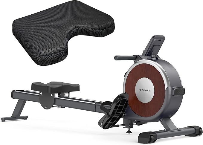 MERACH Rowing Machine & Seat Cushion, Magnetic Rower Machine for Home, 16 Levels of Quiet Resistance, Dual Slide Rail with Max 350lb Weight Capacity