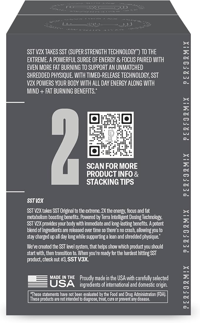 PERFORMIX - SST V2X - Pre Workout - 300 mg Caffeine - Energy Supplements - No Crash - Nootropic - Timed-Release for All Day Focus, Mood & Energy Boost - Men & Women - 80 Capsules