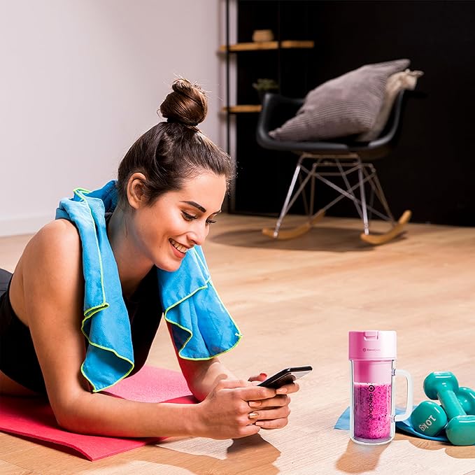 Personal Portable Blender For Shakes & Smoothies, Leakproof & Stylish Portable Mason Jar Shaker, Rechargeable Mini Blender with 10-Blade Blending System 14oz, Pink