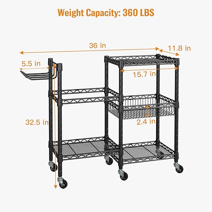 - Size & Weight Capacity: 36”W x 11.8”D x 32.5”H, the whole rack can hold 360 pounds. The yoga mat storage rack comes with 3 shelves, 1 wire basket, and 8 hooks, which can build an enough space for your workout equipment