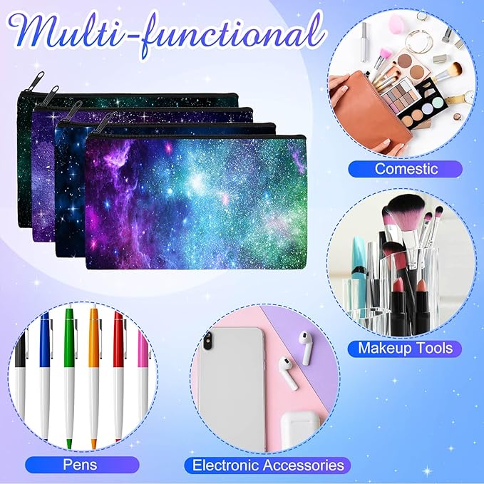 - Starry Sky Design: the makeup bags are designed with 10 different starry sky patterns, colorful and beautiful; These patterns can make you more eye catching and charming; Different patterns can also help you distinguish between different uses