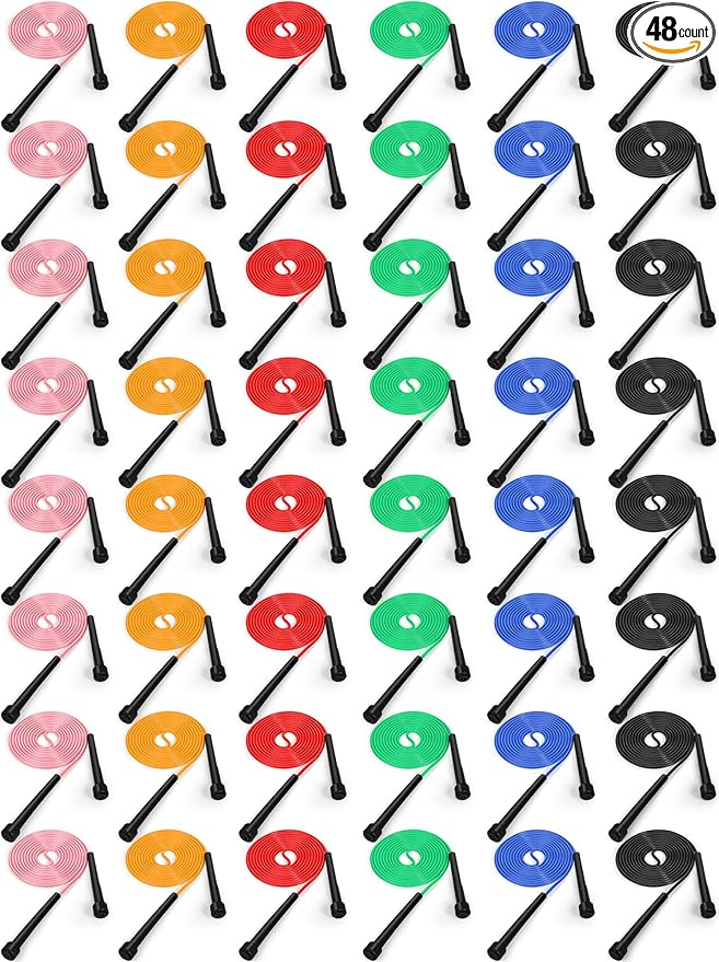 - Jump Rope Set: you will receive 48 plastic jump rope, there are 6 colors in total, which is red, blue, green, pink, orange and black, 8 skipping ropes for each color, rich quantity is enough for daily use and can meet your replacement needs