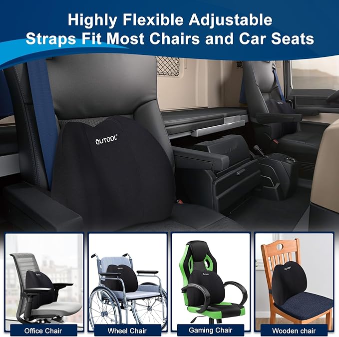 QUTOOL Lumbar Support Pillow for Office Chair, Memory Foam Low Back Support,Back Pain Relief, Ergonomic Large Back Cushion for Desk Chair,Gaming Chair,Adjustable Strap and Washable Cover