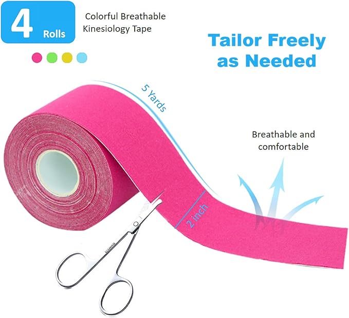 - More Quantity: You will have 4 rolls kinesiology tape (2in x 5Yard), You can use them yourself or share with your sports partners, just enjoy the fun of sports