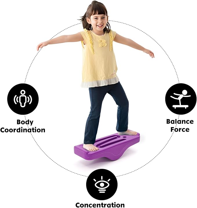 - 【Non-slip Design】The seesaw board has concave-convex non-slip footprint design on its surface, increasing friction between children’s feet and board. Children won’t slip when standing on the balance board.