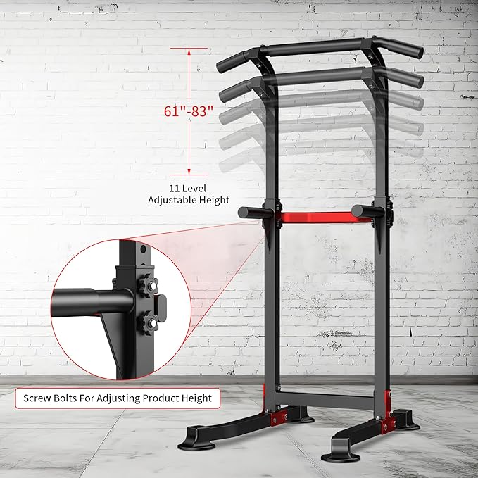 Wesfital Pull Up Bar Dip Bar Power Tower Workout Dip Station Height Adjustable Free Standing Chin Up Bar Home Gym Equipment 330LBS Weight Capacity
