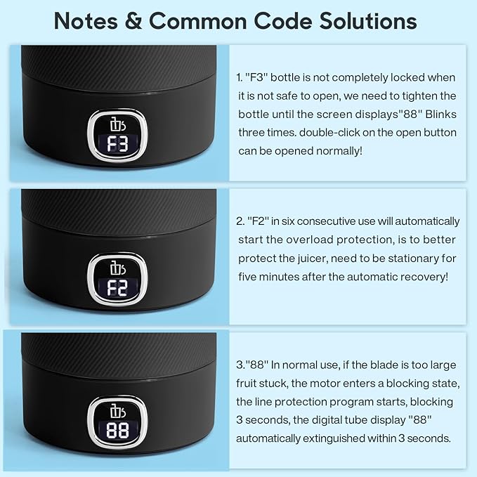 - 🍇Best Design: USB tepyC fast charging, equipped with 3000mAh capacity rechargeable battery, stronger power, while upgrading the LED display, 30S countdown fast juicing + power display, 3-5 hours can be fully charged, fully charged state can produce 15-20 cups of freshly squeezed juice, it is the good ideal portable juicer for home, office, travel, sports