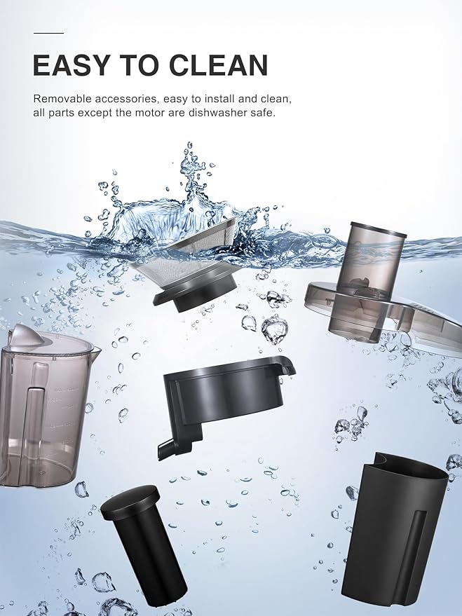 - Safety Design and Easy to Clean - Juicer Extractor with locking system arm, it will not work without cover locked into place. Overload protection system will switch off machine once overheating occurs. Detachable parts makes it easy to clean!