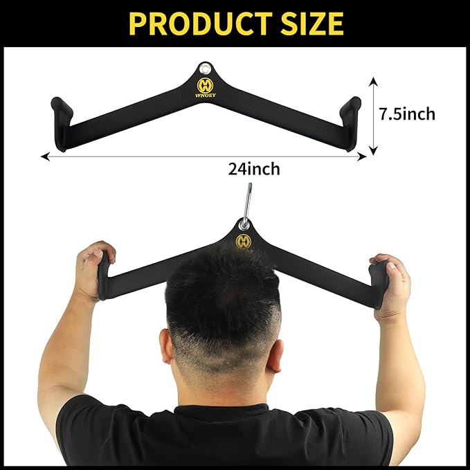 - 【HIGH QUALITY】 :LAT Pulldown Attachments is made of high-quality solid steel, and the exterior is coated with thickened rubber coating,size 24""x7.5"", Ergonomic handle design than other traditional round lat bar handles, focus on the targeted back muscle group.