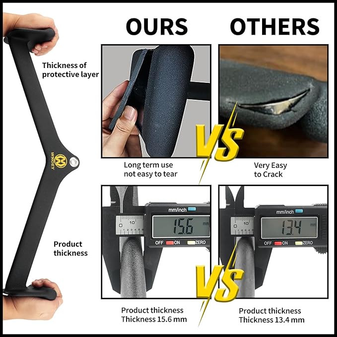 - 【THICKENED COATING】:Tricep Bar have dipping rubber encapsulation that provides soft and supper comfortable neutral grips to avoid the problem of rust and discomfort caused by prolonged hand grips.long term use without tearing, sturdy and durable, making grip lat pull down bar your best choice.
