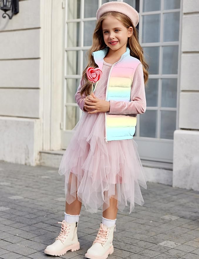 Arshiner Girls Winter Zipper Puffer Vest Lightweight Sleeveless Outwear Puffy Vests for 5-12 Years Old
