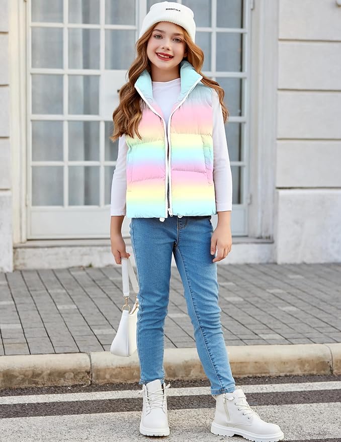 Arshiner Girls Winter Zipper Puffer Vest Lightweight Sleeveless Outwear Puffy Vests for 5-12 Years Old