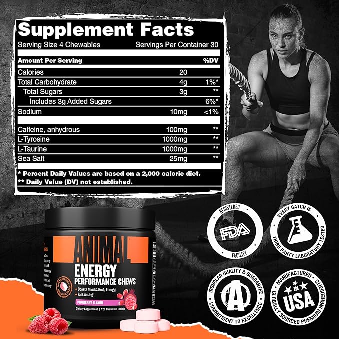 - Extensively Tested, Highest Quality – Produced in our GMP-certified US facility and third-party lab tested for safety and potency, every batch of Animal energy chews with caffeine ensure a clean boost and peak performance you can trust