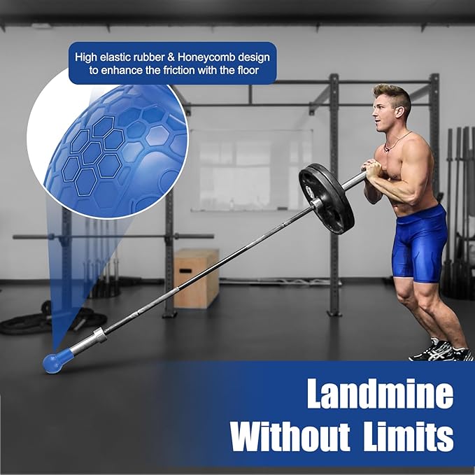 - 【Honeycomb Anti-slip Design】 The honeycomb texture design on the surface of the landmine enhances the friction with the ground. The inner wall anti-compression design of the landmine so that the barbell can fit the mine more stable and prevent it to slip off.Can be adapted to any site: wooden floors, tiles, lawns, rubber floors, carpets, concrete floors