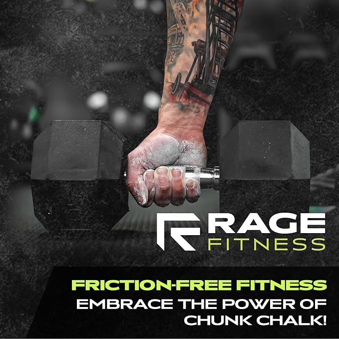 - 【 VERSATILE APPLICATION 】: No more slipping! Rage Fitness Chunk Chalk offers versatile applications for friction prevention on hands, feet, and all body parts. Ideal for weightlifters, gymnasts, climbers, and athletes, ensuring reliable results across various exercises.