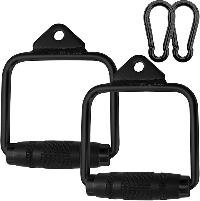 - 💪MULTI-FUNCTION WITH RUBBER HANDLE: Ideal for developing your triceps, biceps, back, shoulders, and abs and improving your grip strength. D Handles give you great grip, allow you to move more weight, help you perform each rep with beautiful form and allow you to exercise two arms at once
