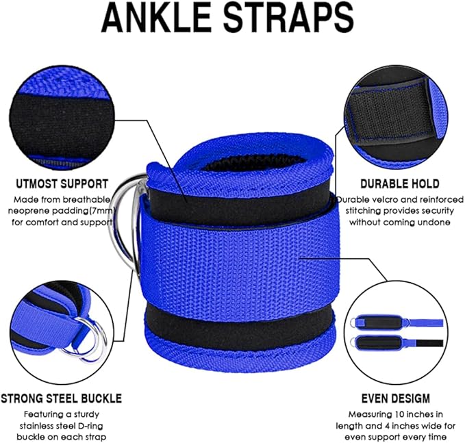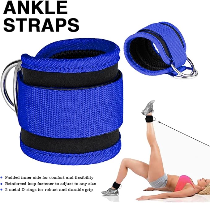 - Material: our 2 pack ankle bands adopt diving grade polyester as main material, each of them has 2 strong metal welded "D" ring, soft fabric materials provide a more comfortable fit, eliminating discomfort during exercise, tight fit around your ankles make you will not feel pain or severe pressure on your ankle, super comfortable to use them