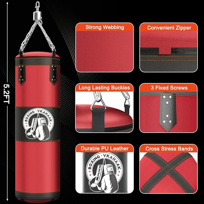 - 【Boxing Bag Tips】Fill through top zip closure. Once filled with (such as clothes, sand, rags, foam, wood chips, sponge, etc.), sandbags can further reduce impact and provide better protection. Moreover, please don't just fill with sand, it is best not to fill more than 80 lbs.
