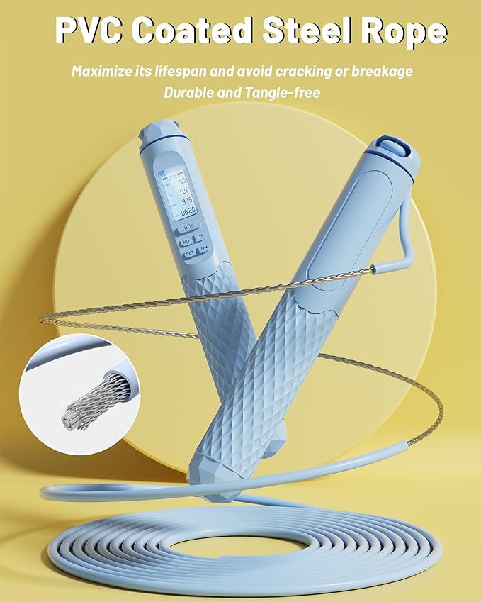 - ✅【nonogo Jump Rope】We are dedicated to developing high-quality counter jump rope, the digital jump rope features an HD LED display that shows the Timer, Weight, Calorie, and Circles. Set your weight and track time, number of jumps, and calories burned to achieve your fitness goals more effectively