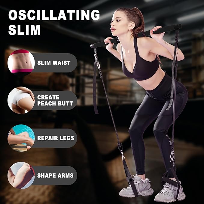 - 【Home Portable Gym】The Ultimate Pilates Stick set can be used in Pilates, stretching, yoga, strength training and other training programs to effectively exercise the ab, arms, legs, hips, waist, triceps and back. More than 30 exercises can be completed with different workout combinations, and resistance bands of different lengths can be suitable for short and tall people, as an alternative to traditional large fitness machines.