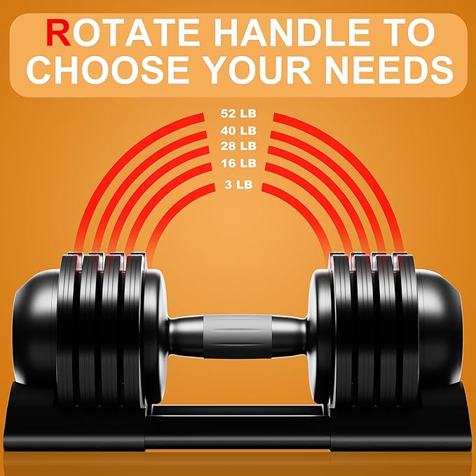 Adjustable Dumbbell,22LBS 44LBS 52LBS Dumbbell Set with Tray for Fitness, Fast Adjust Weight by Turning Anti-Slip Handle, Safety with 8 Lock Slots, Suitable for Men and Women