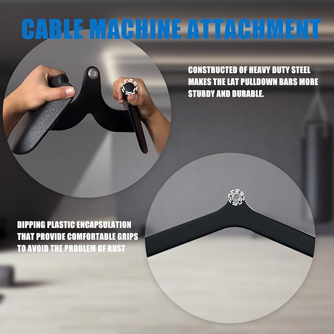 - Reliable Quality:Constructed of heavy duty steel makes the LAT pulldown bars more sturdy. Without worrying about fracture problems. Dipping plastic encapsulation that provide comfortable grips to avoid the problem of rust and discomfort caused by prolonged hand grips