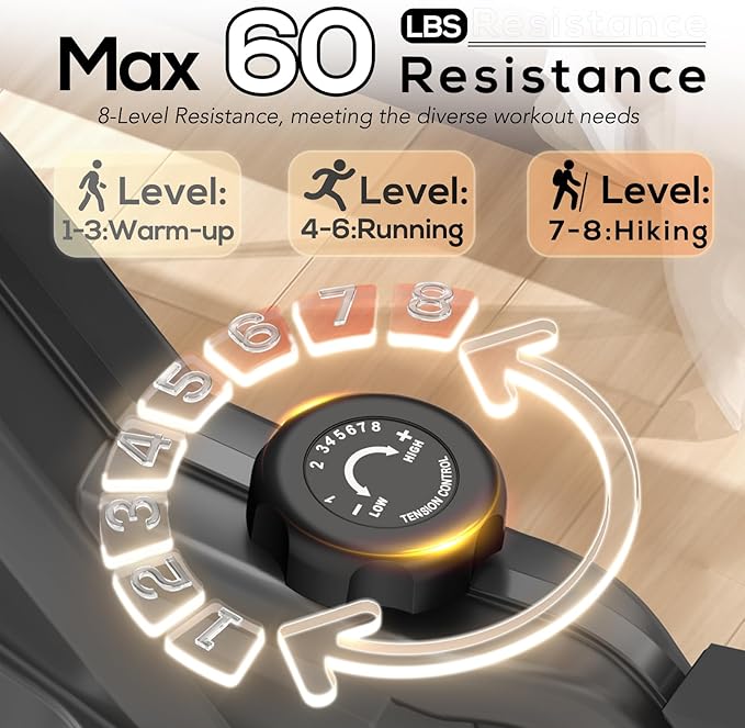- 8 Levels of Magnetic Resistance Adjustment- Recumbent exercise bike with 8 magnets.Muting technology of dual reluctance system for recumbent bike to give you a quieter exercise experience.