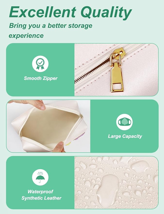 - ★QUALITY MATERIAL - Made of soft synthetic leather, the zipper makeup pouch is both flexible and waterproof. It's easy to clean, simply wipe away stains with a damp cloth