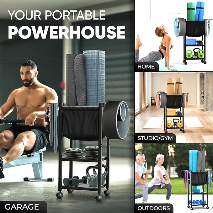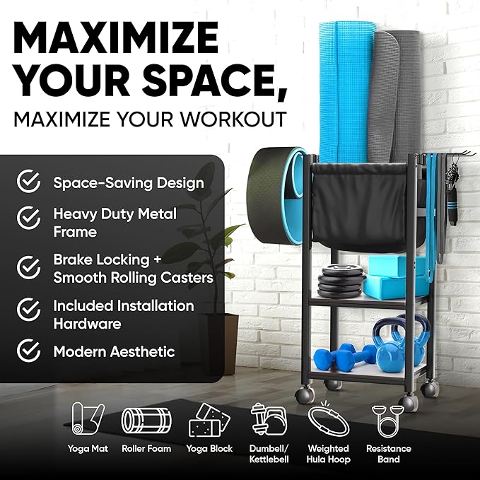- GLIDE ACROSS ANY SURFACE and then lock the two wheels of our home gym storage organizer when you find the perfect spot. With this feature, you won't have to worry about your indoor gym equipment moving on its own