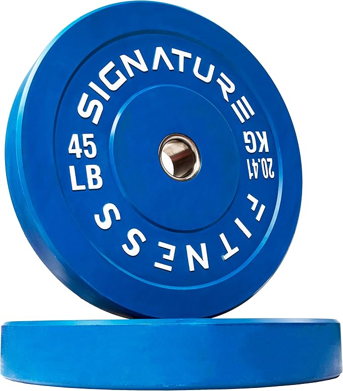 • 🌟 100% VIRGIN RUBBER - LOW ODOR AND BOUNCE 🌟 - Signature Fitness Bumper Plates contain NO recycled rubber. This means low to no odor, guaranteed durability, and low "dead" bounce for safety.