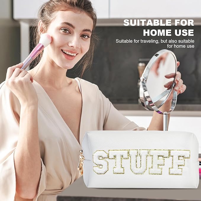 Preppy Patch Stuff Portable Makeup Bag Bulk Pu Leather Cosmetic Bag Waterproof Travel Organizer Zipper Pouch Storage Purse for Women Girls Gift (HZB-BS-STUFF)