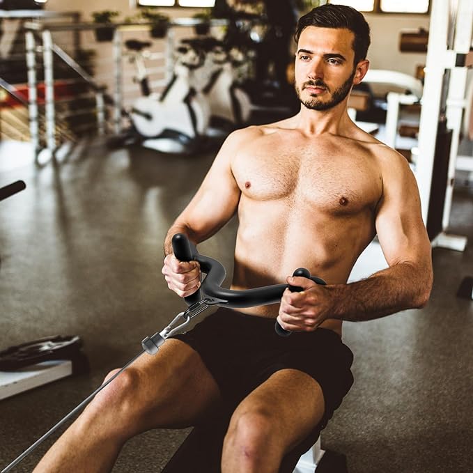 - Versatile Workout Tool This cable attachment is ideal for a variety of workouts, such as seated rowing, pull downs, down presses, kicks, sit ups, bent over rowing, splits, push pulls, knee bends, and more. It is available in five sizes options: 12-inch, 20-inch, 24-inch, 28-inch, and 32-inch. It is compatible with a wide range of strength equipment, such as cable machines, Smith machines, or home fitness systems..
