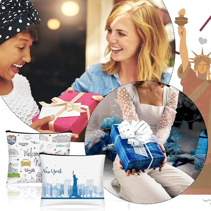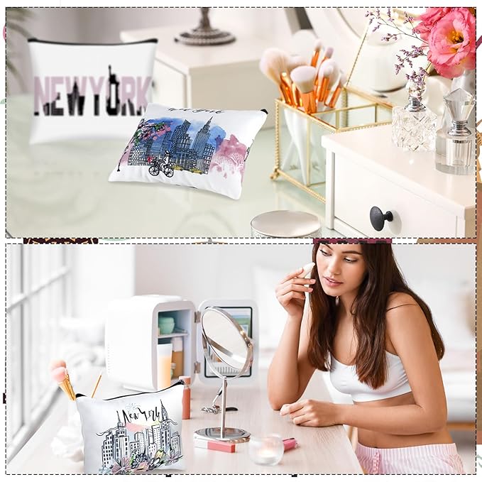 - Multifunctional and Suitable As Gift Items: aside from being a practical and stylish cosmetic pouch, these New York themed bags have a wide range of applications; They seamlessly double as pouch purses that can house your daily items or act as New York souvenirs; These make ideal gift items, ideal for presenting to loved ones who appreciate the aesthetic of New York; Whether it's for a makeup enthusiast or city fanatic, these will be received well