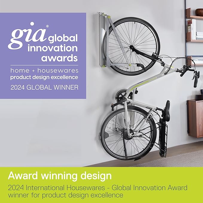 - Award-Winning Design: The Pivot Rack garage bike rack offers a full 150 degrees of swivel in both directions, providing hassle-free access to your bikes while maximizing floor space. International Houseware Association Gia Global Innovation Award winner.
