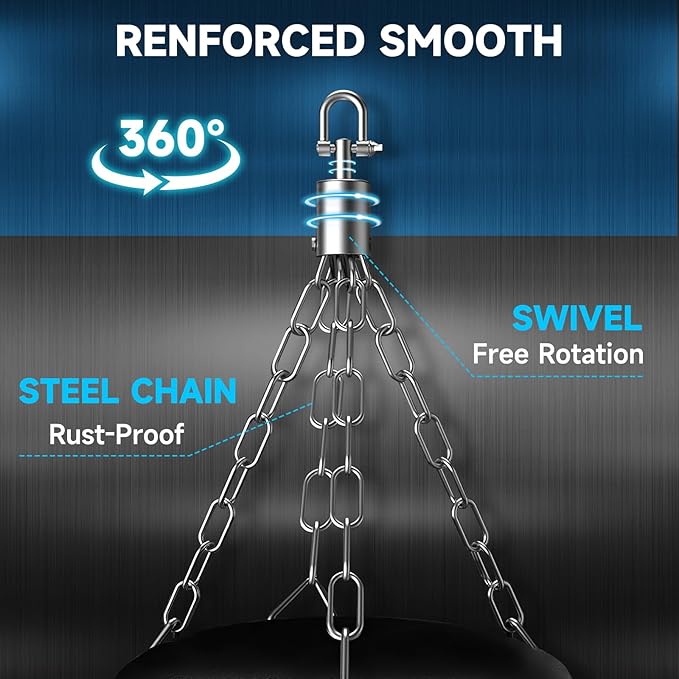 - 80 lb Capacity - Our heavy duty construction allows up to 80 lbs of weight on the punching bag, giving you the ultimate workout experience. Plus, it comes with a carabiner for quick and easy connection.