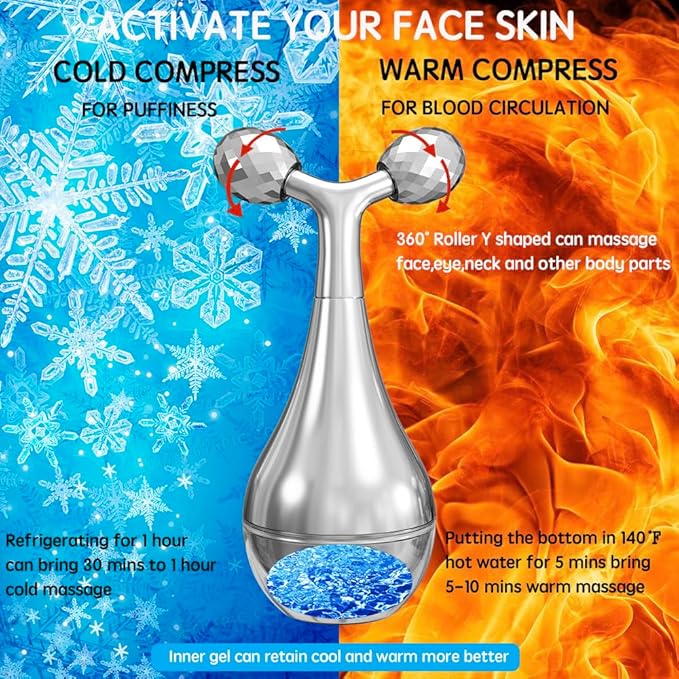 - 【Tension Relief + Reduce Puffiness】ICE ball head with gel inside can keep cold at least 1 hour,it works by providing a cooling sensation on skin,firming skin and reducing facial and eye puffiness. It's soothing on face and eye.