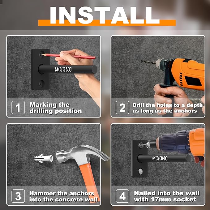- Easy Installation: Your package includes 5 weight racks for plates and 10 large hex lag screws suitable for wood and concrete walls. A word of caution: Avoid mounting on drywall. Ensure you install the holder on a wall that can support its weight.