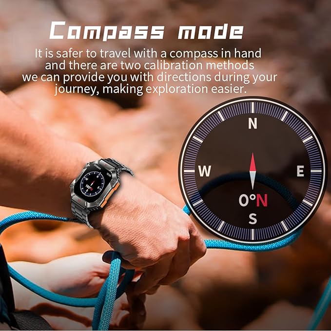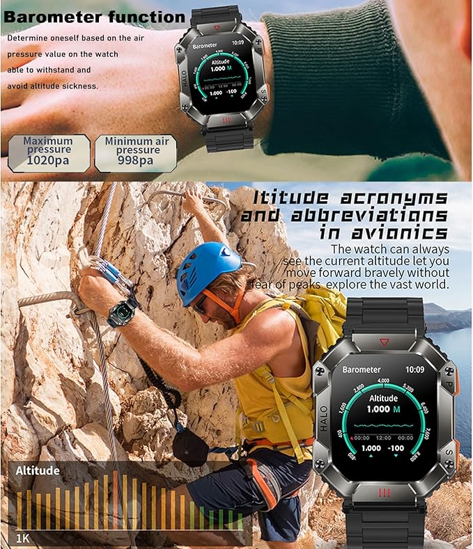 - Your little adventure partner --- the watch has a compass function, two calibration methods, in the journey are available for you to indicate the party, make the adventure easier. The watch can see the current altitude at all times, so that you are not afraid of peaks, go forward and explore the vast world. According to the barometric pressure value on the watch, you can judge your own tolerance to avoid plateau reaction.