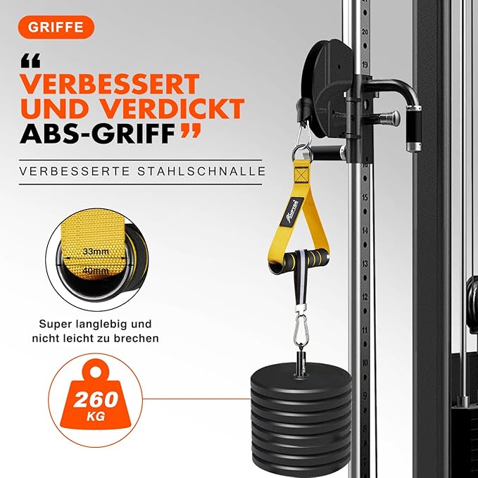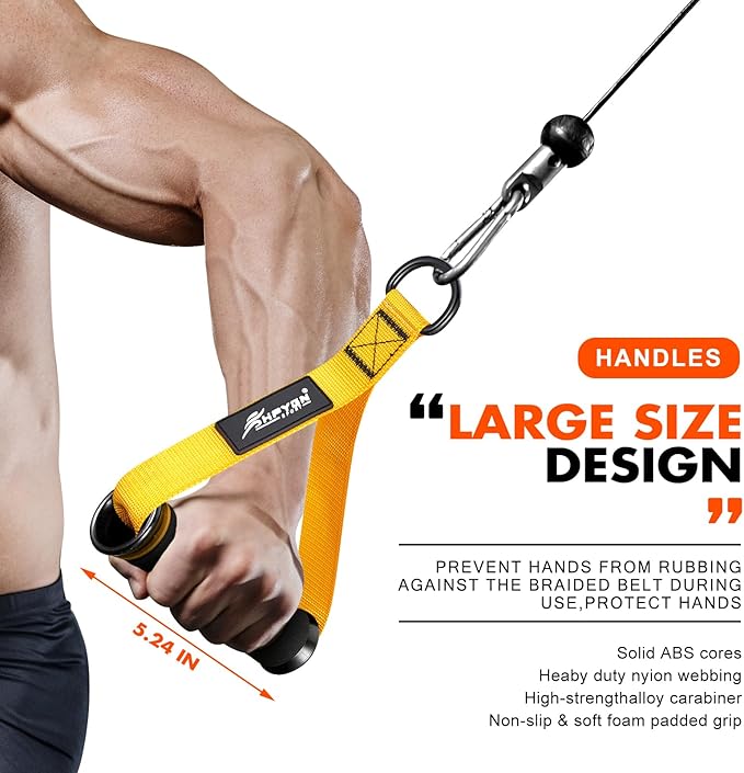 - Premium Quality Materials - Our cable machine handles are thoughtfully designed to conform to the natural structure of your hand, ensuring ultimate comfort and grip. The extra-wide design provides ample space for your hands, while the thick woven nylon webbing and heavy-duty stitching add durability and a luxurious texture.