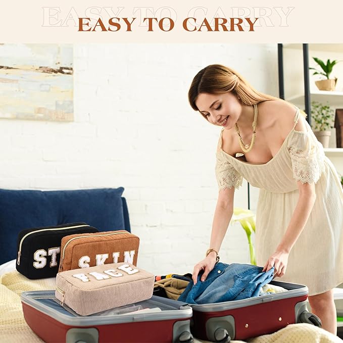 - Quality and Serviceable: made of corduroy material, our preppy patch makeup bag is lightweight and solid, not easy to break or fade, soft and odorless, reusable and can serve you for a long time