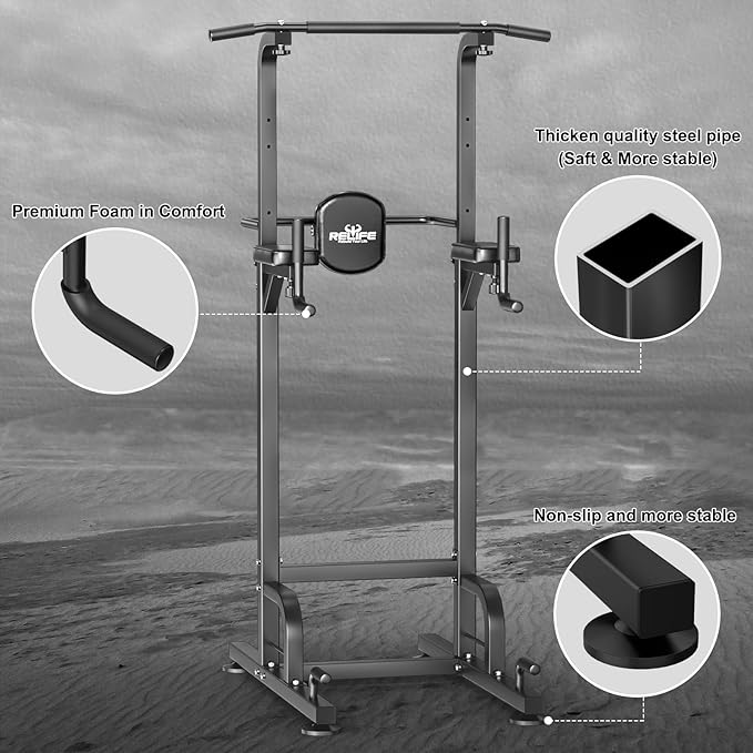 RELIFE REBUILD YOUR LIFE Power Tower Pull Up Bar Station Workout Dip Station for Home Gym Strength Training Fitness Equipment