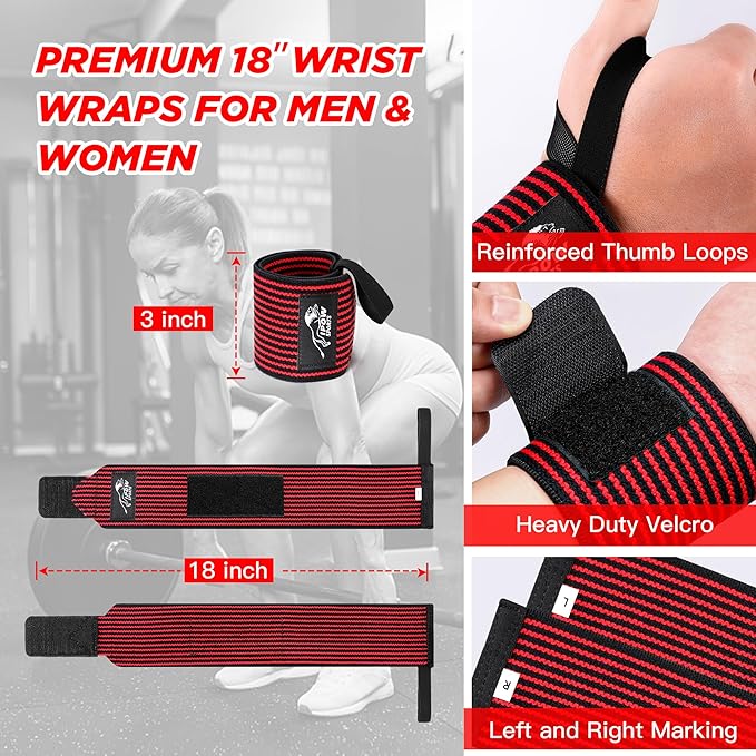 IPOW 18'' Professional Wrist Wraps for Weightlifting 2 Pack(IPF Approved), Heavy Duty Gym Wrist Straps for Working Out, Weight Lifting Wrist Brace for Men & Women, Wrist Support with Thumb Loop