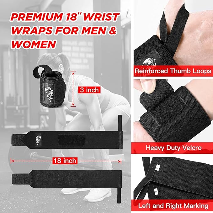 IPOW 18'' Professional Wrist Wraps for Weightlifting 2 Pack(IPF Approved), Heavy Duty Gym Wrist Straps for Working Out, Weight Lifting Wrist Brace for Men & Women, Wrist Support with Thumb Loop